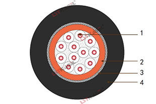 拖令光纤电缆加钢丝铠装层,具有强抗扭性。采用美国进口优质PUR聚氨酯作为护套材料,具有柔韧,耐磨,耐油,耐候,耐酸碱,抗拉,防紫外线,阻燃(可?。┑忍匦?。